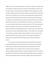 Moreover, Max Weber stressed out that policies and rules are practiced consistently to all workers which mean all the rules and regulations must be obeyed. This form of organization is better to apply in Tata Group, for example in producing the Nano car, the 'ultra-cheap' car that the company Tata Motor launched in 2009 requires a greater numbers of labours. In order to control and to monitor the work done by the labour is not easy as the capital is relatively low. Hence, Tata Motors should create appropriate rules and policies that all employees must follow to produce and generate non-faulty cars.